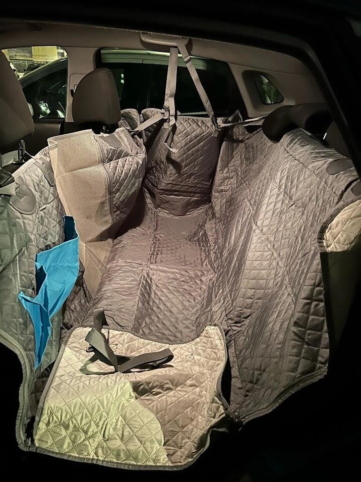"This is the BEST pet car cover! Don't look any further! I was on a 22 hour road trip and my cat went to the bathroom on the cover instead of in his litter box. Without going into gory detail it was a lot of #1 and loose #2. I was able to wipe it up very easily and the material was dry instantly. It is completely waterproof as stated in the description. It also didn't retain any smell either! Once I got home I threw it in the washing machine and it's as good as new. I am thoroughly impressed with this cover!"